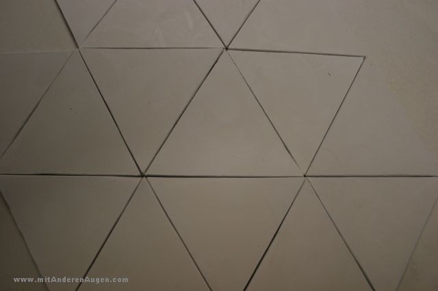 Daher sind mehrere Lampen aus kleineren Elementen aus Ton entstanden. Dabei wird die Fläche regelmäßig parkettiert.