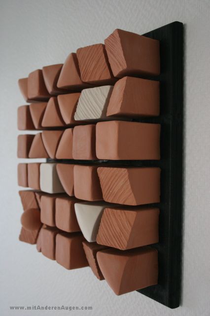 Moderne 3D Bilder aus traditionellen Materialien: Holz und Ton. Die Komposition aus verschiedenen