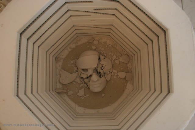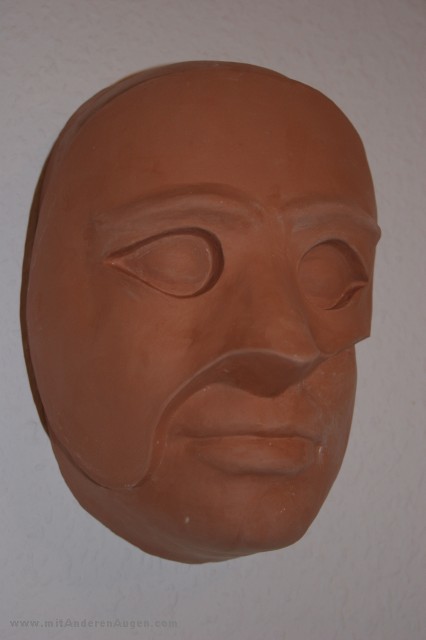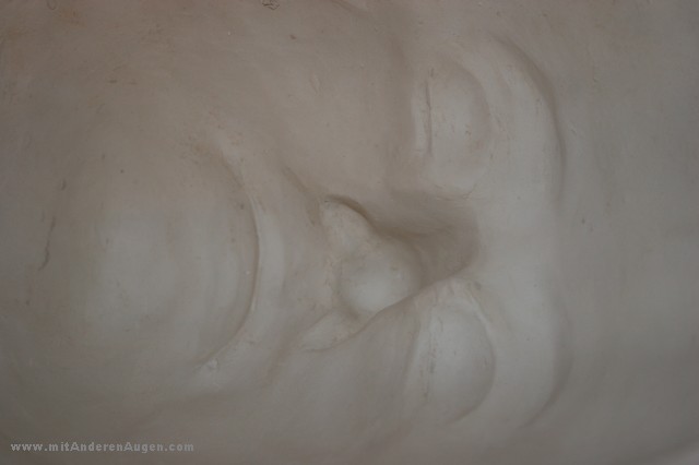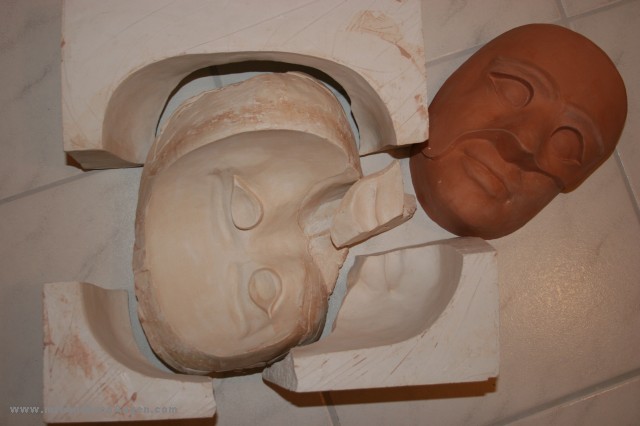 Mehrteilige Gipsform mit dem gegossenen Wandobjekt Face with Mask