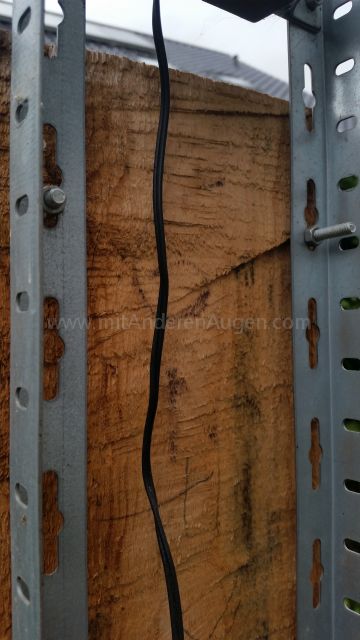 - Die Metallkonstruktion besteht aus Regalbauschienen, die Rostfrei und durch die vorgegebenen Löcher bzw. Schlitze ohne Aufwand zu montieren sind. Daran werden einzelne parallel geschaltete Schalter aus dem Autozubehör befestigt. Sie können die Niederspannung der Lichterkette (auf der Sekundärseite des Trafos – NICHT die Primärseite mit 230V!!!) leicht schalten und sind mit einer wasserdichten Schutzkappe versehen.