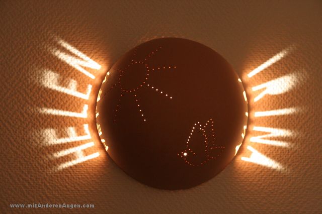 'Jeden Abend dürfen Irina und Helen die Lampe im Flur abwechselnd anschalten. Sie freuen sich richtig darauf!' [Sonderanfertigung der Lampe I Love You] in Stuttgart/Deutschland