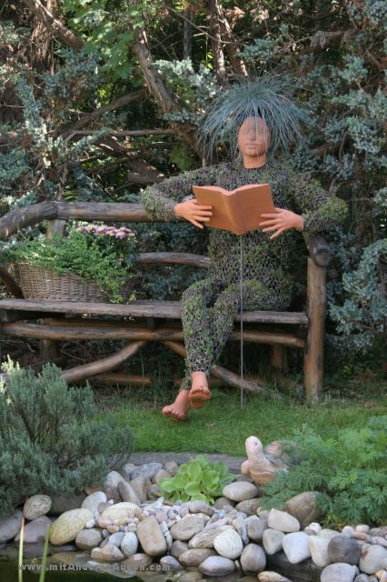 Die Lesende hat eine herrliche Umgebung gefunden.[Die Lesende am Teich]